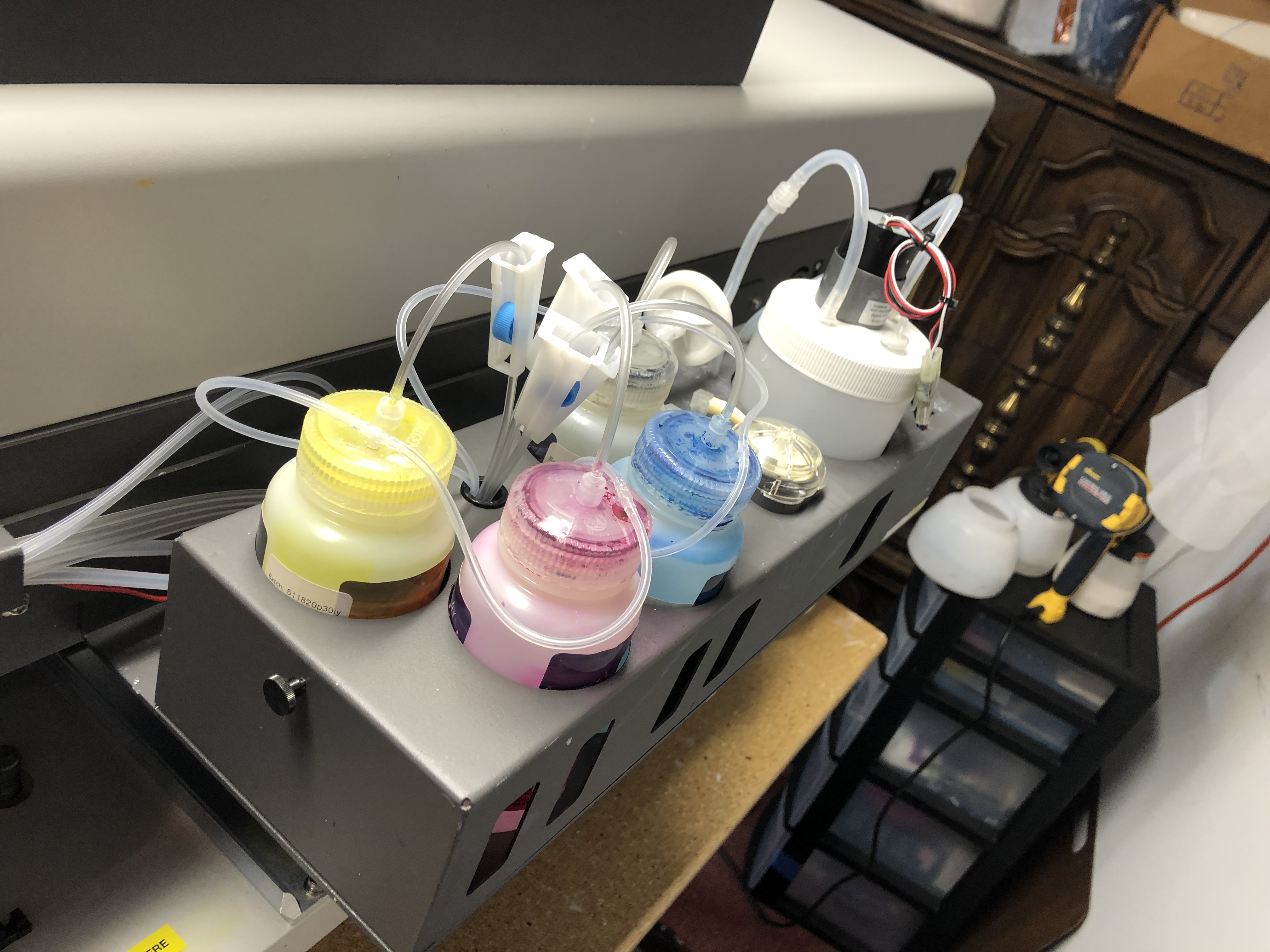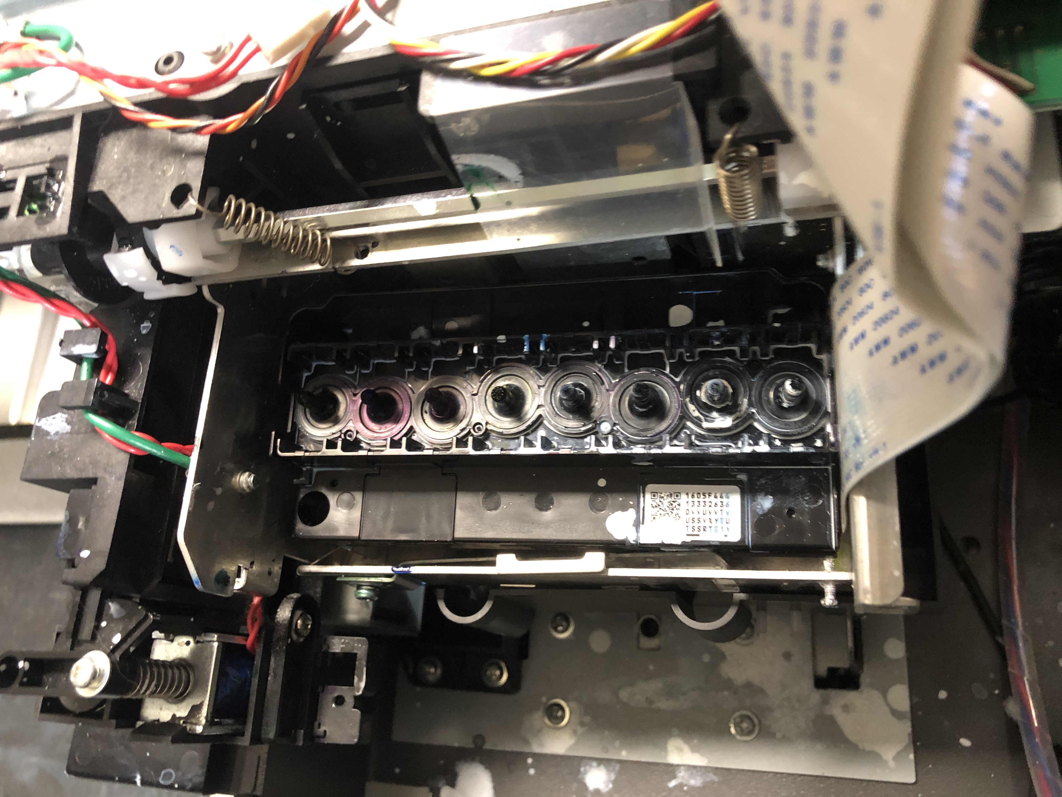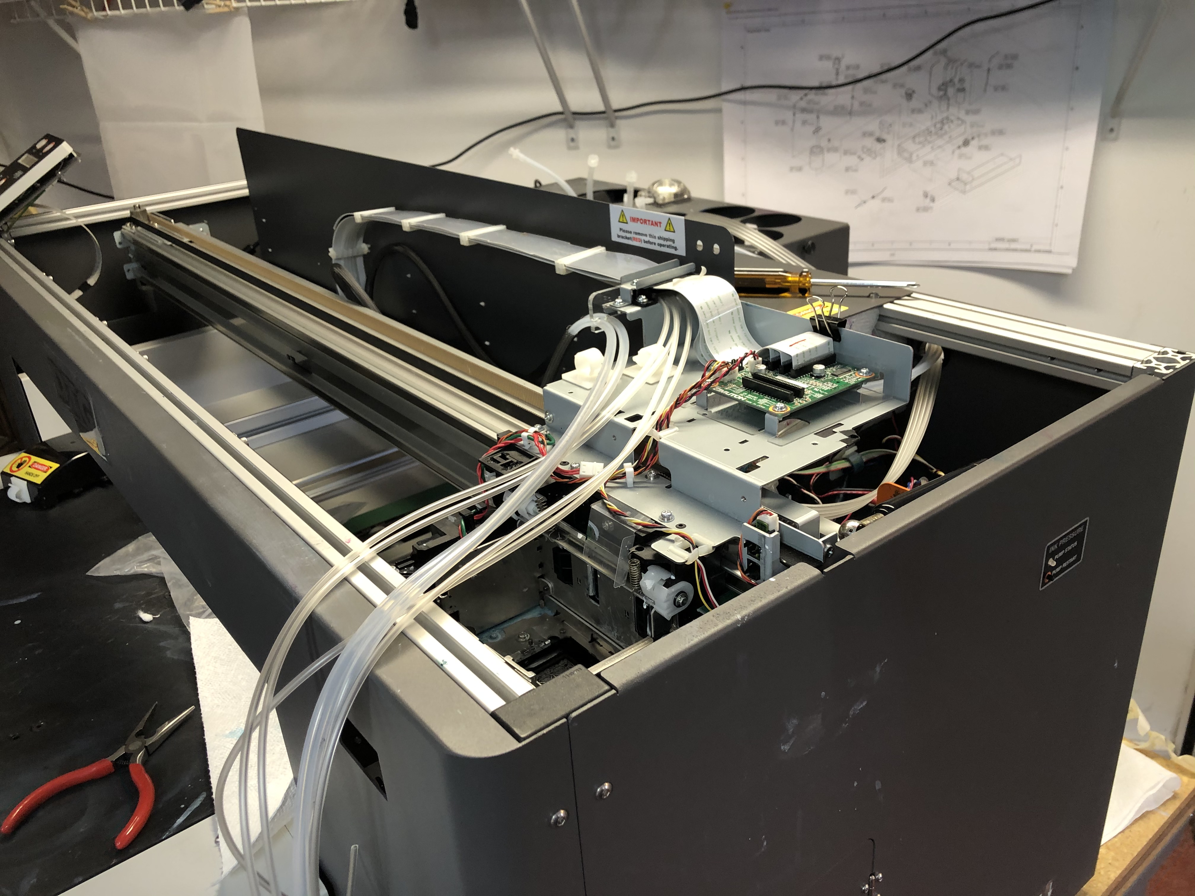 Ok before I start going on a rant. When I first found this machine it was kind of dead, “not working.” So i did a total rebuild, lucky me the all the boards, pumps and motors where ok. The ink lines, print head, and pump line where all clogged like my arteries if i don’t stop eating taco bell. Part where easy to get, from different ink dealers. But hidden secret just goto a local medical supply store and you can find most parts you’ll need. Also if you have a 3D printer, you can make your own and save more…. but i’m not that frugal.